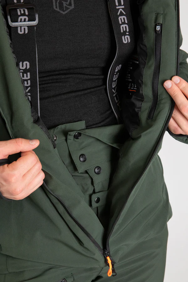 Le cuciture termosaldate e il trattamento idrorepellente DWR proteggono da neve e pioggia, mentre la ghetta paraneve integrata, i polsini in Lycra e le ghette interne impediscono l’ingresso di aria fredda e neve. Dotata di 4 tasche esterne con zip, porta maschera e porta oggetti, è altamente funzionale anche durante le attività più intense.